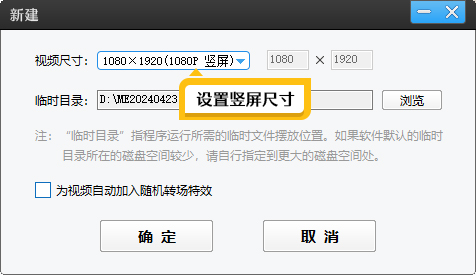 打开爱剪辑,首先设置视频尺寸为1080P竖屏(即9:16比例)。