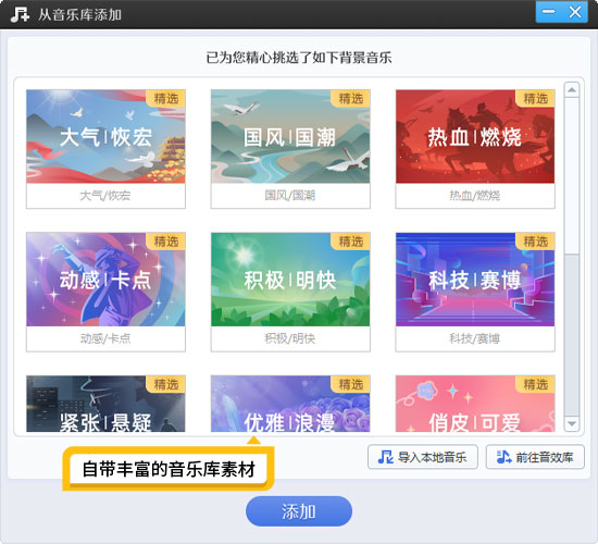 图6:自带丰富的音乐库素材