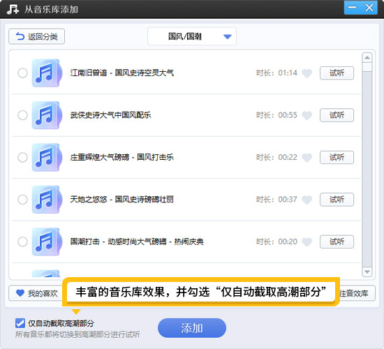 不仅如此,爱剪辑还提供了一项极为实用的便捷功能。在音频处理相关设置区域,你会发现“仅自动截取音乐高潮部分”这一勾选框。勾选此选项后,软件便会凭借智能算法,精准识别并自动截取音乐中最精彩、最具感染力的高潮片段。