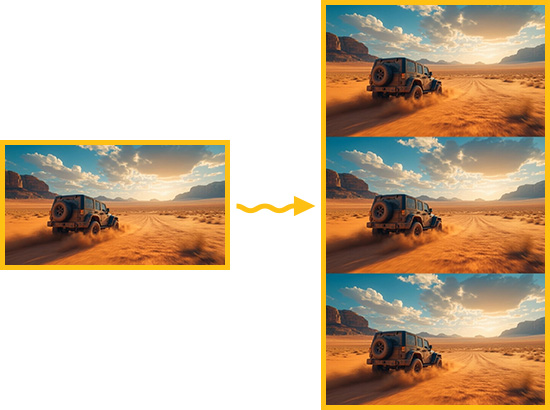 除了裁剪画面,以实现比例修改,我们还可以通过填充背景的效果,给视频填充精美的背景图片、模糊效果、三联屏等,让你轻松实现修改视频比例。