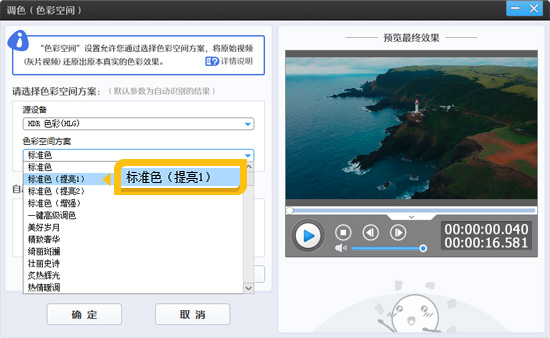 HDR视频分为PQ模式和HLG模式,爱剪辑能够自动识别这两种模式,并匹配标准色调。对于亮度问题,用户可以在“色彩空间方案”下拉框中选择合适的亮度模式,例如“标准色(提亮1)”,轻松提升视频亮度,确保HDR视频在普通设备上也能呈现出最佳效果。