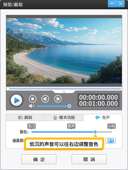 反之,若声音过于低沉,把音色滑块往右边调整,便能提升声音的明亮度和清晰度。