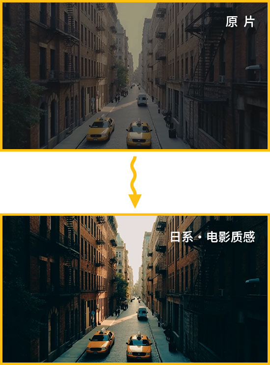画面色彩是营造电影氛围的关键要素。爱剪辑提供了“AI专业电影调色”功能,点击左下角的该按钮,即可进入调色对话框。软件内置了上百种电影调色效果,涵盖复古、科幻、悬疑等多种主题风格。无论是想要打造经典老电影的怀旧色调,还是科幻大片的炫酷色彩,只需一键点击,就能快速应用,让视频瞬间拥有电影级的色彩表现。