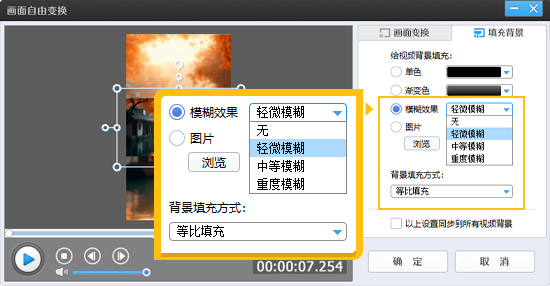 视频导入后,点击主界面左下角的“画面自由变换”功能,这可是制作三屏效果的关键一步。在这个弹出框中,你会看到诸多功能选项。此时,点击“填充背景”,随即会展开一系列背景设置方案。从中挑选“模糊效果”。这里提供了丰富的模糊程度选择,从轻微模糊、中度模糊到重度模糊,任你挑选。根据自己的创意和视频风格,选择合适的模糊程度,眨眼间,中间清晰、上下虚化的三屏模糊效果就制作完成了。是不是超级简单?