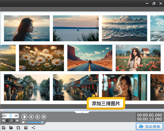 开启爱剪辑软件,创意与情感交织的视觉盛宴拉开帷幕。首先导入软件自备的白幕视频,截取10秒作为“画布”,接着踏入“叠加素材”板块,点击“加贴图”,将前期精心拼接的照片按三排布局依次添加,宛如编织绚丽锦缎,每张照片都是独特故事音符。
